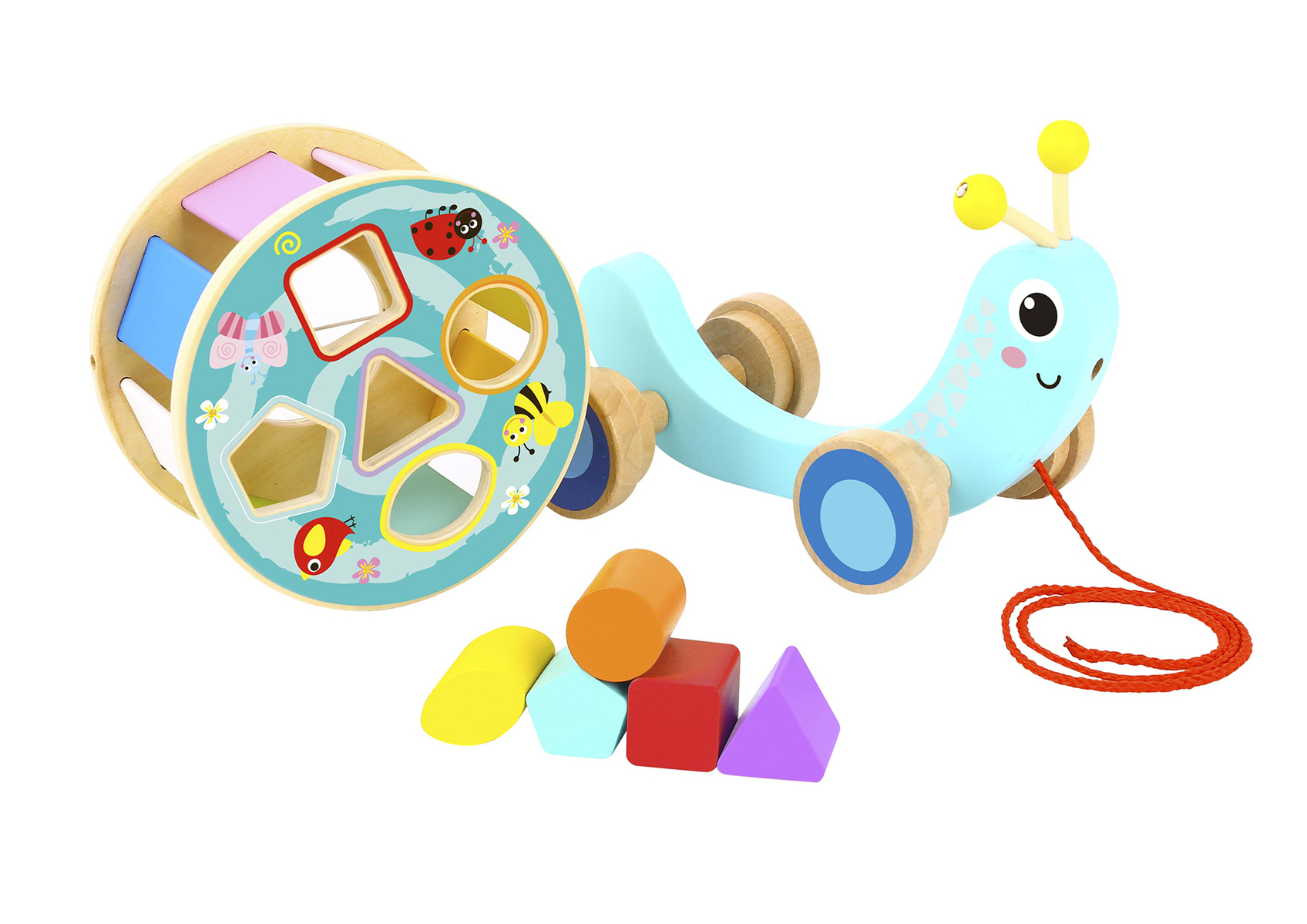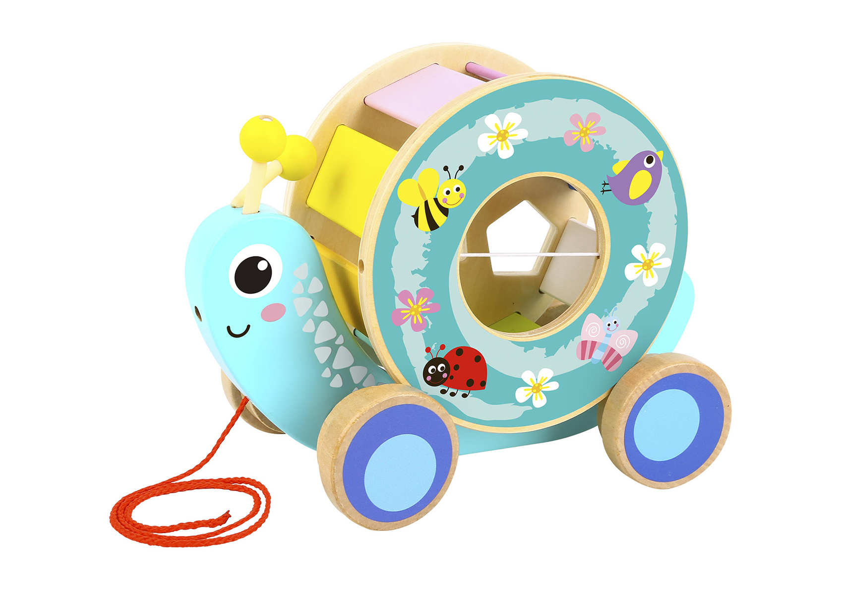 Each wooden Snail shape sorter pull toy from Tooky Toys is made from timber, finished to the highest quality and painted in child safe, non toxic paint.