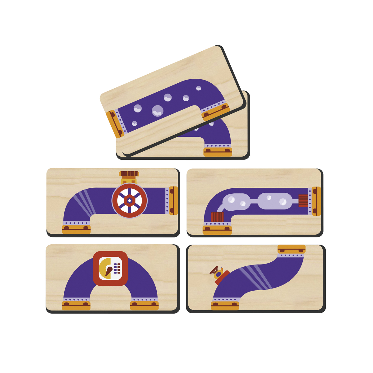 Can you put the pipes together correctly so crocodile can have a bath? With Turn of the water puzzle game by Tookyland you have to try and build a flowing pipe on each puzzle card. some pipes have already been printed, so don’t forget you have to include these in your plans. Use the magnetic pipe tiles to work on a plan and get the water flowing.