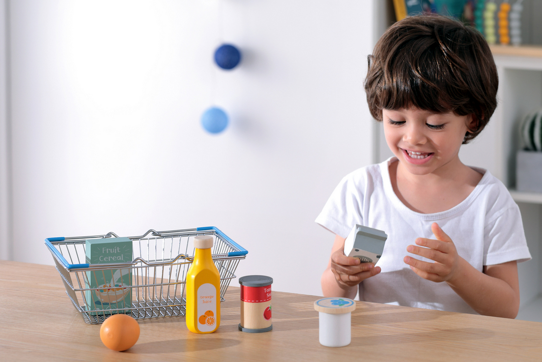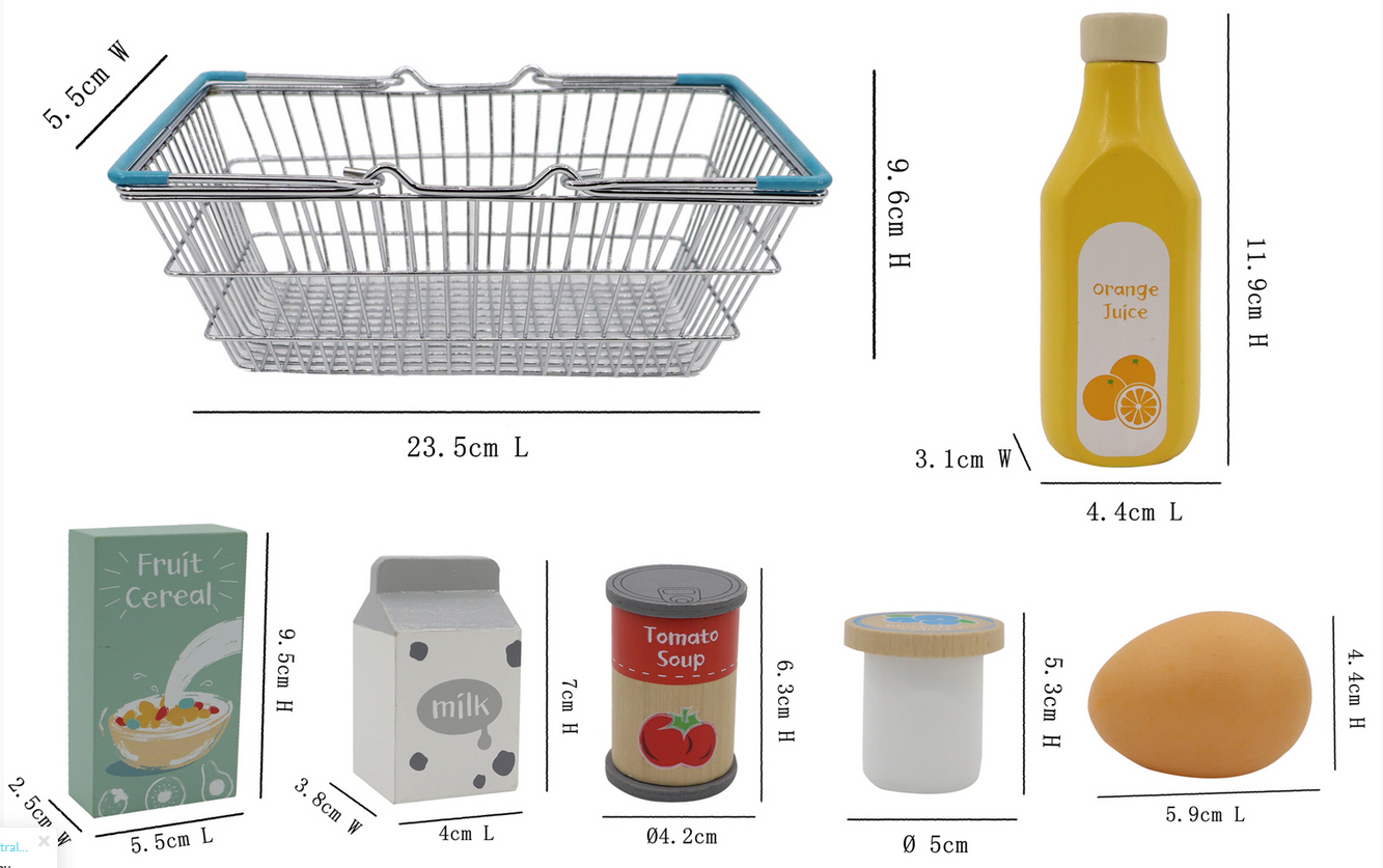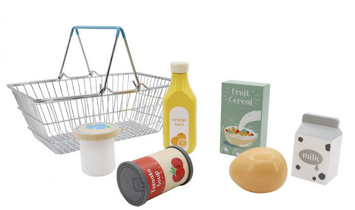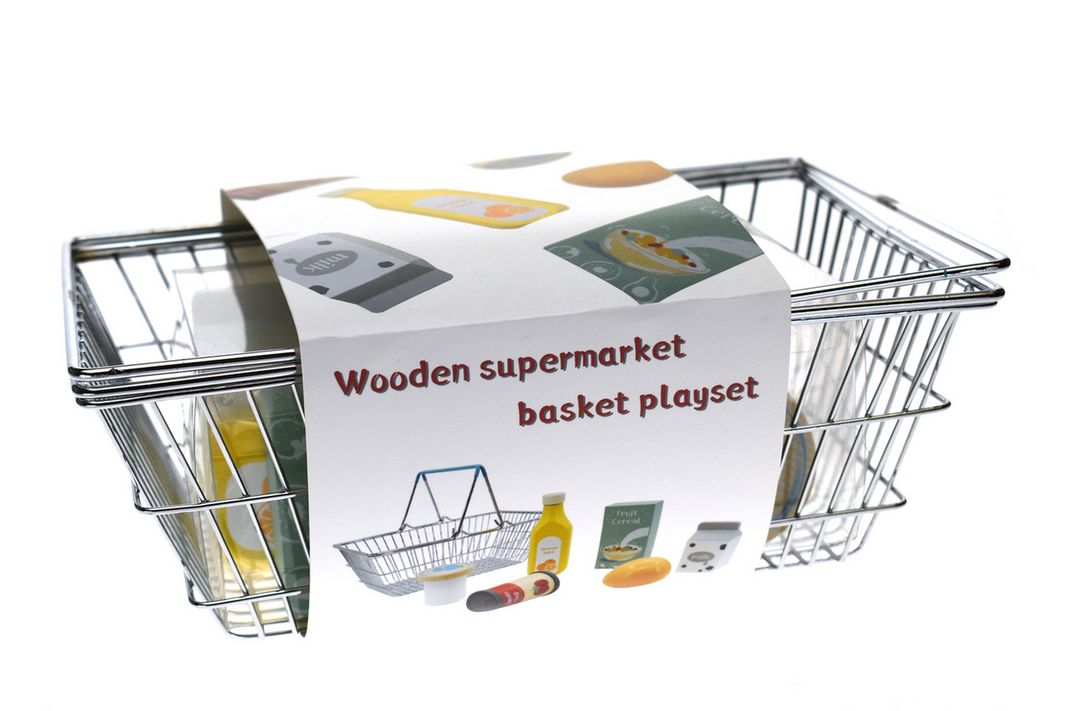 Combine our wooden supermarket playset with metal basket with our wooden toy kitchen for hours of role play kitchen fun.